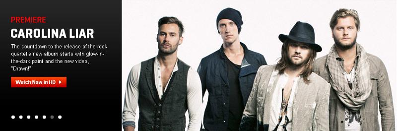 Vevo is premiering “Drown,” the companion video to Carolina Liar’s brand-new single.“Drown” is the lead track from Carolina Liar’s highly anticipated new album, WILD BLESSED FREEDOM, in stores September 27th. The disc was recorded with producers Max Martin (Katy Perry, Avril Lavigne, Pink), Shellback (Usher, Ke$ha) and Tobias Karlsson at Maratone Studios in Stockholm and Thunderhoney Studios in Los Angeles. About the album, vocalist/guitarist Chad Wolf says, “”It sounds bigger, and it feels bigger. I wouldn’t say that this is a concept album, but there’s a sense of freedom that runs through this group of songs: the idea of having the faith to let yourself go and do something crazy.” Wolf’s no stranger to rolling the dice. A few years back, he was so fed up with playing covers at hole-in-the-wall gigs down South, that he grabbed his guitar, boarded a plane for the first time in his life and headed west in search of greener pastures. “Didn’t really have a plan,” he laughs. “But I was drowning in coffeehouse gigs and knew I needed a change of scenery if I was gonna make something happen. LA seemed like a good place to begin.” He worked a series of odd jobs to make ends meet, including a gig as an extra on a Celine Dion video shoot and cleaning toilets in exchange for studio time, before landing an internship with renowned songwriter Diane Warren, whom he credits with helping to sharpen his songwriting skills. But it was a chance gig house-sitting for famed Swedish producer Max Martin that completely changed his game. “Max and I became buddies through a mutual friend, but I never wanted to bring up music around him,” he recalls. “I guess I didn’t want to put him on the spot.” But after hearing one of Wolf’s songs, the producer phoned from Stockholm and said “if you can write three more as good as this one, maybe we can work something out.” “It was crazy,” laughs Wolf. “I had literally just quit my day job and was trying to figure out my next move. It turned out to be a trip to Sweden.” While living in Stockholm, Wolf met guitarist Rickard Göransson, bassist/keyboardistJohan Carlsson and drummer Peter Karlsson through mutual friends of Martin. The four quickly bonded over common tastes in music and they agreed to play on Wolf’s tracks. “We hit it off pretty quickly,” says vocalist. “They’re amazing musicians and good people and it was during the recording process that we really became a band. And after finishing the record, they came back to the States with me and we got a place together while shopping the album.” That record became Coming to Terms, which Rolling Stone hailed for “fusing the anthemic elements of U2 and the Killers with the electro production of Swedish pop maestro Max Martin.” Fueled by the hit singles “I’m Not Over” and “Show Me What I’m Looking For,” the disc became one of 2008’s most acclaimed debut releases, with the band’s songs generating nationwide airplay on modern rock and alternative stations, and appearing in such TV shows as The Vampire Diaries, American Idol, Gossip Girl and The Hills. Spotlighted as an iTunes Single of the Week, “Show Me What I’m Looking For” logged more than 600,000 downloads, and “I’m Not Over” shot to No. 3 on Billboard’s Modern Rock Chart. The band toured extensively in support of the first album, sharing stages with the likes ofOne Republic, Rob Thomas and The Academy Is… They also performed on Jimmy Kimmel Live and The Ellen Degeneres Show, played themselves in an episode of 90210, were spotlighted as a Rolling Stone “Breaking” artist, and were featured in both MTV’s “Discover & Download” and VH1’s “You Oughta Know” programs. “It was a good start,” muses Wolf. “But we want more.” Carolina Liar Online | MySpace | Facebook | Twitter | YouTube
